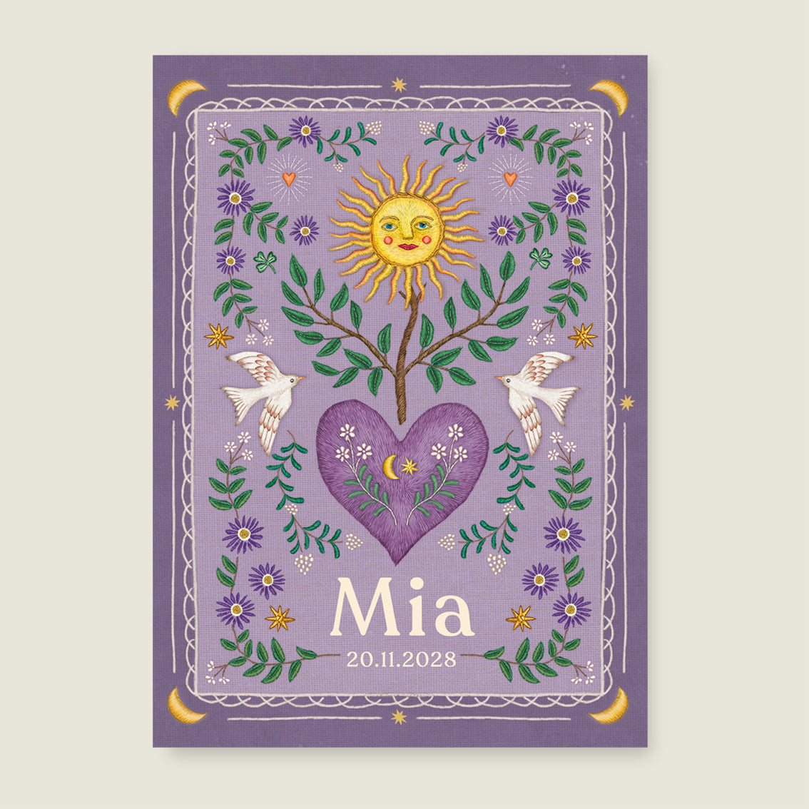 Geboortekaart Sample Heart Bird Paars helpt je zo stap voor stap naar de perfecte keuze voor jullie geboortekaartje.
