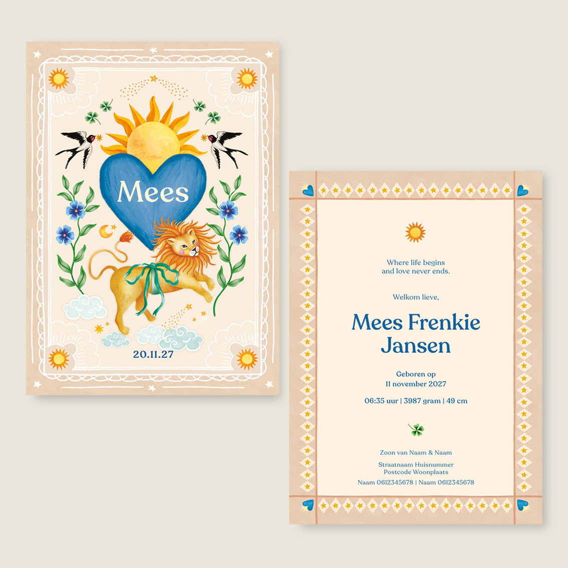 Geboortekaart Sample Lovely Lion Heart helpt je zo stap voor stap naar de perfecte keuze voor jullie geboortekaartje.
